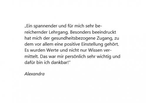 Der Lehrgang ist nicht nur eine fundierte Ausbildung für deinen persönlichen und beruflichen Weg – sondern auch eine wertvolle Zusatzqualifikation, die besonders für Menschen aus Gesundheits-, Sozial- und pädagogischen Berufen eine sinnvolle Ergänzung darstellt. Ob im Gesundheitswesen, im schulischen Kontext, in der Kinderbetreuung, im Coaching oder im Sozialbereich – das erworbene Wissen eröffnet neue Möglichkeiten, gesundheitsfördernd zu arbeiten und Menschen ganzheitlich zu begleiten.